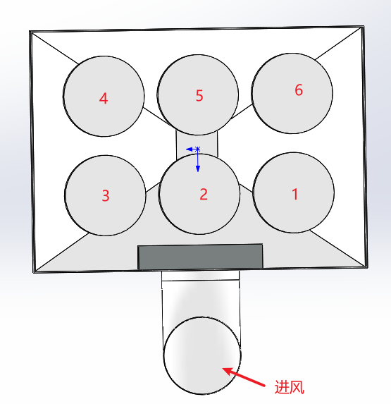 對過濾倉的進行氣固兩相流分析,根據顆粒分布信息(如圖2.1所示),做以下簡化模型處理:對于小粒徑顆粒(<100um)與氣流一起視為單相流;大粒徑顆粒(>100um)單獨作為固體相分析。在分析時對濾筒進行編號,如圖2.2所示,通過分析濾筒表面風速、大顆粒分布、大顆粒速度來綜合判斷濾筒的損傷。