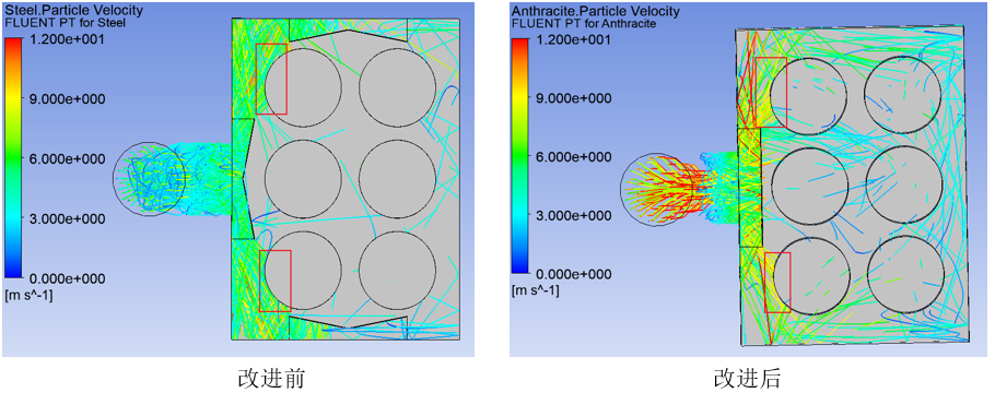 圖3.5 改進前后顆粒跡線圖